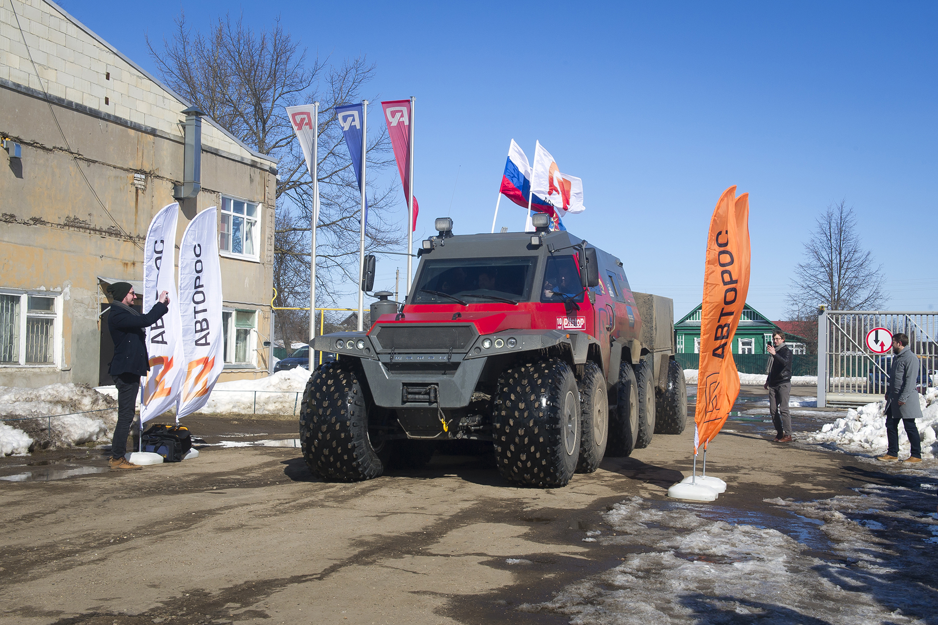 The expedition "NORTH WITH NO BARRIERS" ended. On Friday noon, accompanied by the music of Russian military marches, the all-terrain vehicle Shaman entered the territory of the Avtoros company, where the entire company staff greeted it with great joy. Avtoros is really grateful to everyone who helped, participated and organized this interesting trip to the North. The expedition took place from March 4 to 30, during this time the SHAMAN traveled 7600 km - 3500 km off-road and the rest on public roads. The route passed through Arkhangelsk, Mezen, Canin Nos, Naryan-Mar, Ust-Tsilma, Ukhta, Mezen and back to the AVTOROS factory.