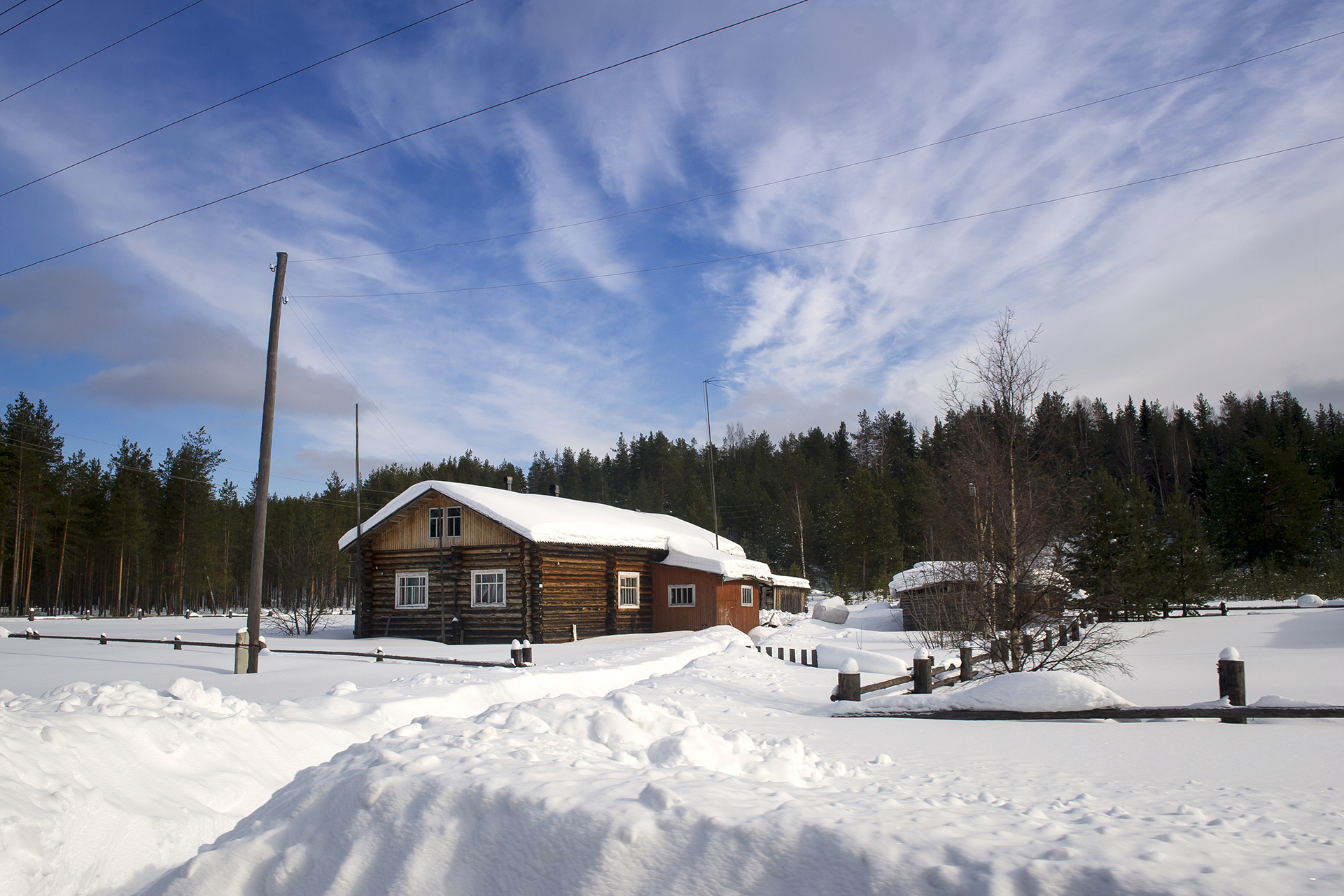 That day we woke up even earlier than necessary. Having crossed the river Mezen, we got to Kamenka. Hospitable locals who are great fans of off-road vehicles offered us pancakes with cloudberry jam for breakfast . Then we made a trip to the village of Dolgoshchelye, about 35 kilometers away. The village is really beautiful, its streets with real northern houses are amazing (just like the museum in Malye Korely, but real-life and better), and in order to feel the whole charm of the northern way of life deeply, of course, it is better to stay here longer. We took some photos and went back to Kamenka.
