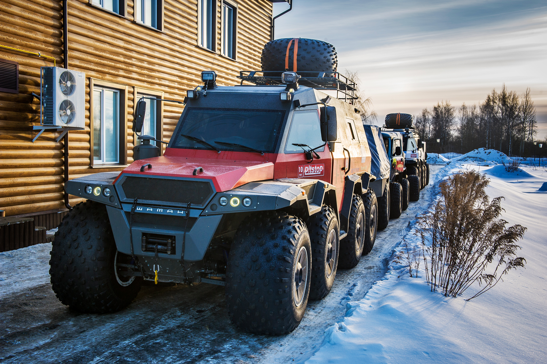 The expedition team came back home. We returned back through Arkhangelsk. Estimated arrival date was March 28th. The red SHAMAN returned to Tver on its own wheels. Evgeny Pavlov sent his 6x6 quad bike back with a transport company in Ukhta.