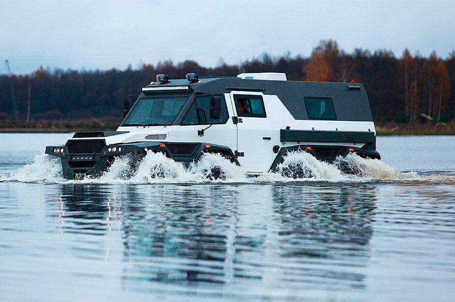 г. Москве представлен обновленный вездеход, который имеет новое шасси, построенное по мостовой схеме, а так же современный эргономичный интерьер и экстерьер. Новый вездеход наделен особыми способностями и имя его – «ШАМАН».